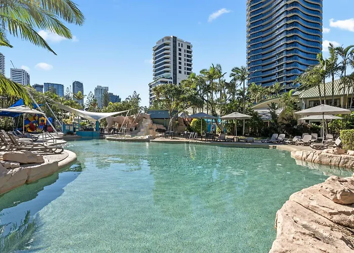 Om van uw vakantie in Gold Coast te genieten, verblijf in Diamond Beach 150 Gold Coast appartementen, gelegen binnen 900 meter verwijderd van het Dracula's Cabaret Restaurant Gold Coast en op een rijafstand van 15 minuten van het Cbus Super Stadium. Gasten kunnen een duik nemen in een buitenzwembad om te ontspannen na een lange dag.